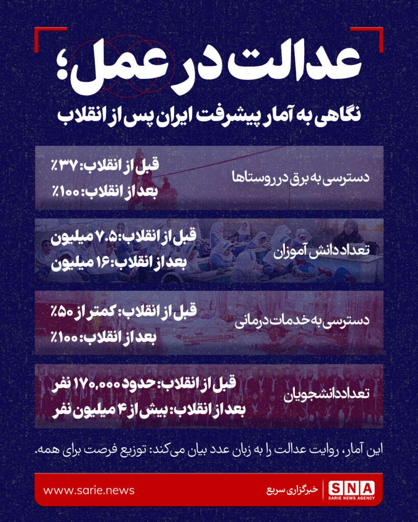 عدالت در عمل؛ نگاهی به آمار پیشرفت ایران پس از انقلاب 2 روز پیش زمان مطالعه کمتر از یک دقیقه 2 روز پیش زمان مطالعه کمتر از یک دقیقه اشتراک گذاری فیسبوک توییتر مسنجر مسنجر واتس آپ تلگرام اشتراک گذاری با ایمیل چاپ
