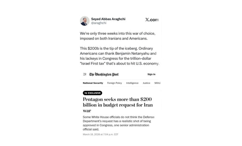 عراقچی افزود: شهروندان عادی امریکا باید بنیامین نتانیاهو و همراهانش در کانگرس را بهخاطر «مالیاتِ اسرائیلمحور» تریلیوندالری که در آستانه تحمیل بر اقتصاد ایالات متحده است، مسئول بدانند.