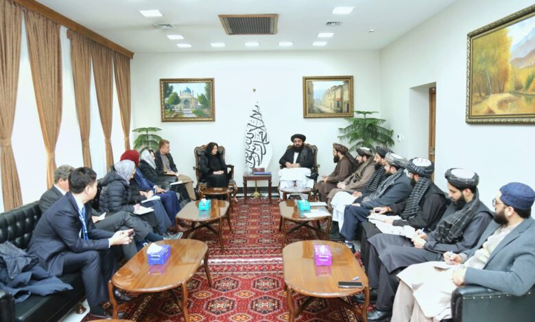 امیر خان متقي، سرپرست وزارت امور خارجه با روزماری دیکارلو، معاون دبیرکل سازمان ملل در امور صلح و سیاسی، دیدار و درباره همکاریهای دو جانبه و ادامه پروسه دوحه گفتوگو کردند.