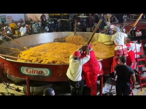 نایجېریايي پخوونکې ‘اشپزې’ او د ګینیس د نړیوال ریکارډ لرونکې هېلډا باچي هڅه وکړه چې د “جولوف وریجو” تر ټولو لوی دیګ پوخ کړي. جولوف د لوېدیځې افریقا د وریجو یو ډول مشهور خواړه دي.