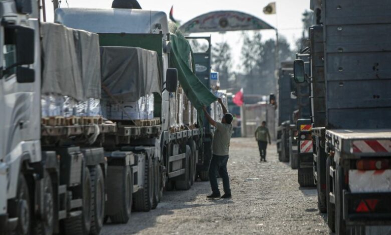 گزارش‌های رسانه‌ای حاکی است که صبح امروز 400 موتر حامل کمک‌های بشردوستانه به سمت گذرگاه‌های کرم ابوسالم و العوجه حرکت کردند تا پس از انجام بازرسی‌ها، وارد نوار غزه شوند.