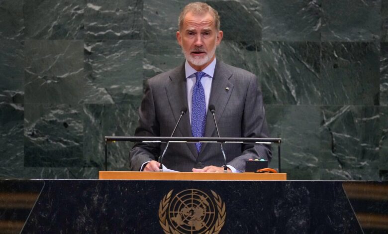به گزارش خبرگزاری سریع؛ فلیپه ششم، پادشاه اسپانیا، در سخنرانی خود در مجمع عمومی سازمان ملل متحد بر اهمیت چندجانبهگرایی و نقش حیاتی سازمان ملل در مقابله با بحرانهای جهانی تأکید کرد. وی از کشورهای عضو خواست که برای حل درگیریهای جاری در غزه و اوکراین همکاریهای مشترک بیشتری داشته باشند.